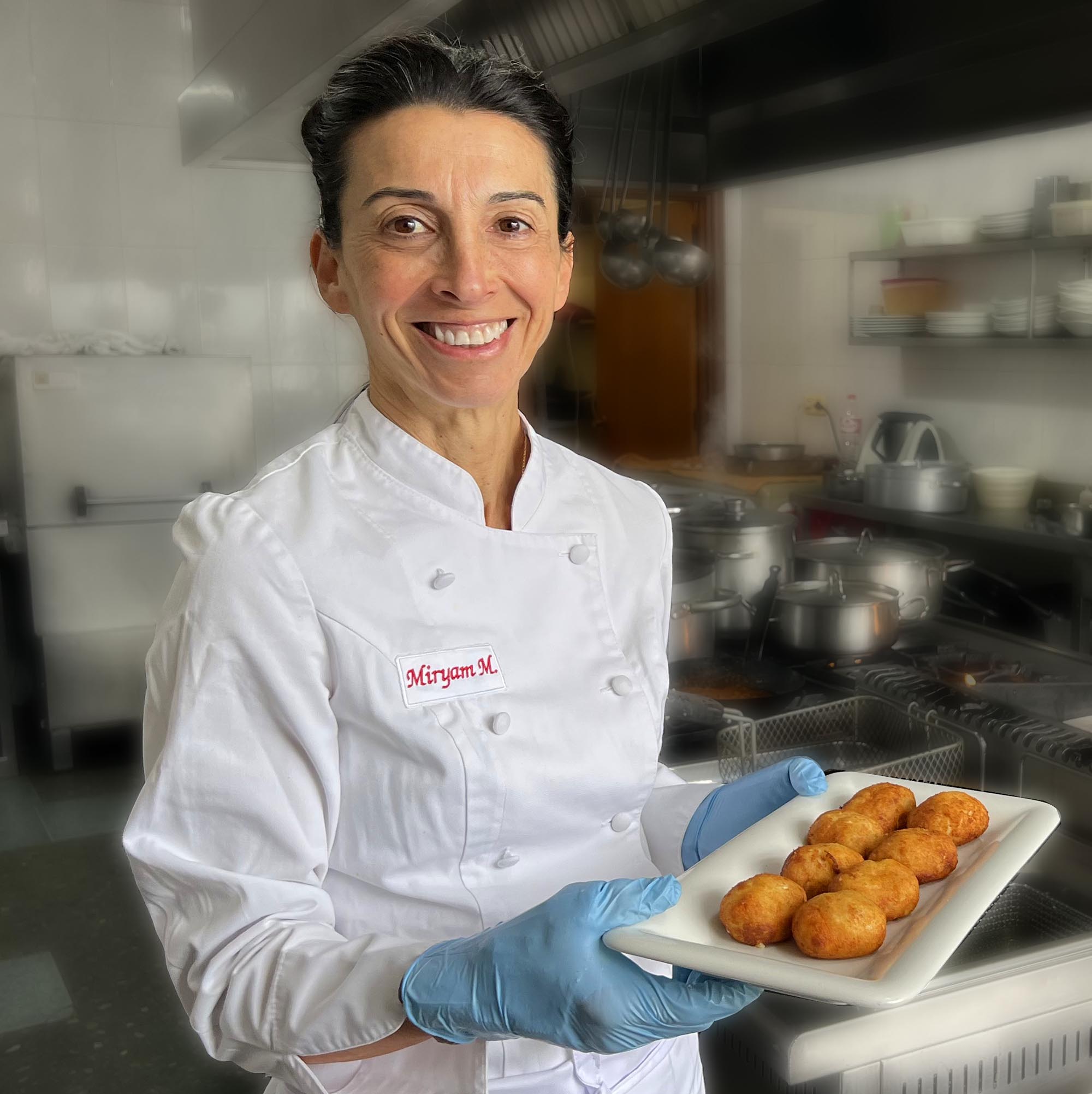 Míriam Mesones San Millán dirige los fogones del Restaurante La Cueva en Alar del Rey desde hace 23 años, junto a su cuñada Marisa Santos, siendo Esperanza Caro (suegra de Míriam) la que las precedió en la cocina de este popular restaurante, y la que a la vez la que les enseñó la profesión y les trasfirió las recetas de sus más exitosos platos que se degustan en la actualidad.
